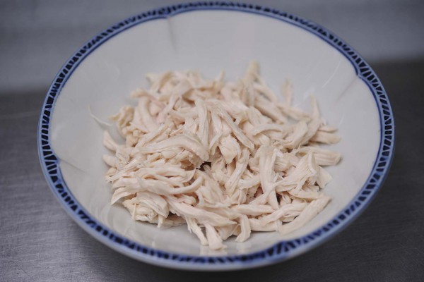 ② ささみはレンジで加熱します。 ( 酒少々を振り、ゆるくラップをかぶせて目安は1分。 火の通り具合で 追加熱して下さい。)